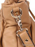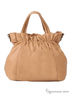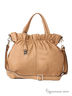 Дамская сумка с одним отделением на молнии. Внутри карманы разного типа. Декоративные элементы в виде сжатости в верхней части сумки. Подкладка - бежевый нейлон, фурнитура - золото. Короткие, мягкие ручки. Длинный, регулируемый плечевой ремень. Дно мягкое.
