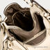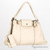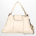 Деловая, но очень оригинальная дамская сумка, состоящая из двух частей под разными молниями, закрытыми одним небольшим клапаном. Спереди имеется небольшой кошелек на магните. Ручки средней длины, жесткие. Фурнитура - никель, подкладка - серый нейлон. Контрастная темная отделка.