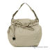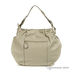 Дамская сумка. Одно отделение на молнии. Внутри карманы разного типа. С лицевой стороны сверху ремешок, за счет которого происходит небольшое сжатие сумки. С задней стороны карман на молнии, по бокам декоративный разрез для увеличения объема. Подкладка - коричневый нейлон, фурнитура - светлое золото. Ручка средней длинны. Дно мягкое, форма