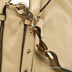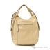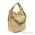 Дамская сумка из натуральной кожи. Основное отделение закрывается на молнию. Внутри сумки разного типа карманы. С задней стороны карман на молнии. Сумка декорирована ремешками с клепками с лицевой и задней стороны. Подкладка - коричневый нейлон, фурнитура - золото. Ручки жесткие, короткие, регулируемый, съемный плечевой ремень. Дно мягкое, форма.