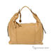 Вместительная дамская сумка. Одно отделение на молнии. Внутри карманы разного типа. По бокам карманы на молнии. Декоративный элемент в виде отстрочки с лицевой и задней стороны. Подкладка - коричневый нейлон, фурнитура - золото. Одна короткая ручка. Дно мягкое.