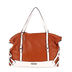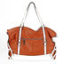 Большая вместительная дамская сумка, состоящая из одного отделения на молнии, содержащего разного типа карманы, декоративные элементы в виде кожаной аппликации по бокам, с лицевой стороны и сзади, так же с задней стороны карман на молнии. Подкладка темно-серый полиэстер, фурнитура серебро. Ручка мягкая, средней длинны, дополнительная длинная ручка. Дно мягкое.