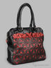 Сумка из натуральной телячьей кожи ,на лицевой и задней стороне ажурная вставка из кожи с текстилем красного цвета-перфорация,закрывается на молнию с металлическим фирменным бегунком ,внутри подкладка с логотипом производителя имеется 1 основное отделение, отделение для мелочей и мобильного телефона и карман для документов на молнии, ручки кожаные на металлических кольцах, внизу имеются 4 металлические ножки. Размер длина 33 см*высота 32 см*ширина 13 см, полная длина ручек 52 см.