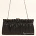 Изящная женская вечерняя сумочка из атласного текстиля. Стенки изделия плотные. Передняя часть сумки декорирована тканевыми складками и бантиком. Основное отделение застегивается на рамочный замок. Внутри один открытый кармашек. Подкладка - текстиль. Ручка-цепочка средней длины позволяют носить сумку на плече. Цвет фурнитуры - темное серебро, ножки отсутствуют. Дно не формованное.