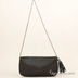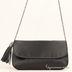 Изящная женская вечерняя сумочка из атласного текстиля. Стенки изделия средней плотности. Основное отделение застегивается на металлическую магнитную кнопку. Внутри один открытый кармашек. Подкладка - текстиль. Ручка-цепочка средней длины позволяют носить сумку на плече. Ручка декорирована кисточкой с бахромой и стразами. Цвет фурнитуры - темное серебро, ножки отсутствуют. Дно не формованное.
