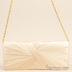 Изящная женская вечерняя сумочка из атласного текстиля. Стенки изделия плотные. Передняя часть сумки декорирована складками. Основное отделение застегивается на металлическую магнитную кнопку. Внутри один открытый кармашек. Подкладка - текстиль. Ручка-цепочка средней длины позволяют носить сумку на плече. Цвет фурнитуры - золото, ножки отсутствуют. Дно формованное.