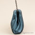 Изящная женская вечерняя сумочка из атласного текстиля. Стенки изделия плотные. Передняя часть сумки декорирована тканевыми складками и бантиком. Основное отделение застегивается на рамочный замок. Внутри один открытый кармашек. Подкладка - текстиль. Ручка-цепочка средней длины позволяют носить сумку на плече. Цвет фурнитуры - темное серебро, ножки отсутствуют. Дно не формованное.