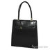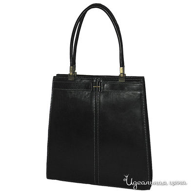 Женская сумка, выполненная в строгом стиле из кожи черного цвета. Ручки средней длинны, позволяющие носить сумку на плече.