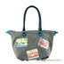 Модная женская сумка-трансформер из натуральной фактурной кожи серого цвета. Передняя часть сумки декорирована нашивками. Основной отдел застегивается на молнию. Ручки средней длинны позволяют носить сумку на плече.