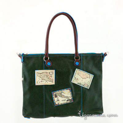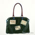 Изящная женская сумка-трансформер из натуральной кожи темно-зеленого цвета. Передняя часть сумки декорирована нашивками. Основное отделение застегивается на молнию. Ручки средней длинны позволяют носить сумку на плече.