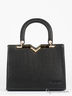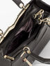Красивая сумка квадратной формы с двумя ручками декорирована металлической вставкой со стразами. Имеются несколько больших отделений, карман под телефон и карточки.