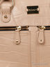 Элегантная женская сумка из натуральной фактурной кожи. Стенки изделия плотные. Три внешних кармана на молнии. Три основных отделения на молнии. Внутри два открытых кармашка и один прорезной карман на молнии. Подкладка - текстиль. Две небольшие ручки. Цвет фурнитуры - золотистый. Дно плотное, формованное, с четырьмя пуклями. Сумка вмещает формат А4.