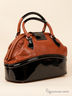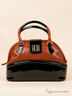 Эффектная женская сумка из натуральной кожи. Стенки изделия плотные. Основное отделение застегивается на молнию и хлястик с поворотным замком. Внутри два открытых кармашка и один прорезной карман на молнии. Подкладка - текстиль. Две небольшие ручки. Цвет фурнитуры - матовое серебро. Дно плотное, формованное, с четырьмя пуклями. Декорирована вставками лаковой кожи. Сумка не вмещает формат А4.
