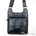 Тонкая сумка с задней стороной по телу, состоит из четырех разделов. Длинный тонкий карман на молнии, вместительный карман на молнии, а так же два кармана разного размера на молнии под клапаном на магните. На клапане имеется декоративная пряжка и вставка из натуральной кожи. Подкладка - черный нейлн, фурнитура - серебро\хром. Длинный регулируемый плечевой ремень - стропа.