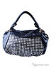 Прекрасная объемная сумка из искусственной кожи со вставками из тонких переплетающихся полос. Ручки средней длины позволяют носить сумку на плече. Основное отделение застегивается на молнию. Бока сумки дополнены патами с пряжками. Один внешний прорезной карман на молнии.