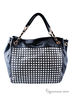 Отличная объемная сумка из искусственной кожи со вставками из переплетающихся узких полос. Ручки средней длины, декорированные цепочками, позволяют носить сумку на плече. Сзади один внешний прорезной карман на молнии.