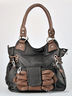 Стильная сумка из искусственной кожи. Стенки изделия средней плотности. Накладной карман с клапаном на молнии декорирован вставками в форме листков. Внешний прорезной карман. Основное отделение застегивается на молнию. Ручки средней длины позволяют носить сумку на плече.