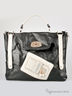 Эффектная сумка-портфель из фактурной искусственной кожи. Спереди оригинальные вставки из кожи контрастного цвета. Основное отделение застегивается на молнию и клапан с поворотным механизмом. Один внешний прорезной карман на молнии.