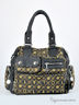 Эффектная сумка из искусственной кожи с оригинальным вышитым узором. Четыре внешних накладных и один прорезной карманы на молнии и на кнопках. Ручки средней длины позволяют носить сумку на плече. Бока дополнены кольцами для ремня.