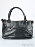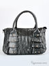 Оригинальная женская сумка из фактурной искусственной кожи. Один внешний прорезной карман. Основное отделение застегивается на молнию. Спереди сумка декорирована оригинальными вставками с заклепками и вертикальными складками.