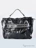 Изящная сумка из искусственной кожи. Плотные стенки изделия. Основное отделение застегивается на клапан с поворотным механизмом и на молнию. Клапан декорирован клепками и люверсами. С обратной стороны прорезной карман. Короткая ручка позволяет носить сумку в руке. По бокам кольца для длинного ремешка.