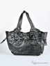 Потрясающая сумка из фактурной искусственной кожи. Спереди сумка декорирована оборками. Сзади один прорезной карман на молнии. По бокам узкие шнуры, продетые в люверсы, регулируют внутренний объем. Ручки средней длины позволяют носить сумку на плече.