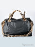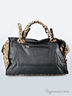 Эффектная сумка из фактурной искусственной кожи. Сумка декорирована вставками с леопардовым принтом. Короткие ручки позволяют носить сумку в руке, а длинная ручка, декорированная цепочкой, - на плече. Один внешний прорезной карман.