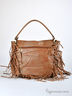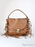 Оригинальная сумка из фактурной искусственной кожи. Сумка декорирована узкой кожаной бахромой. Основное отделение застегивается на молнию и клапан с замком. Один внешний карман застегивается на молнию. Короткая ручка позволяет носить сумку в руке.