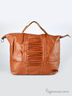 Потрясающая сумка из искусственной кожи. Спереди вставка с горизонтальными защипами. Основное отделение застегивается на молнию. Сзади расположен внешний прорезной карман на молнии. Короткие ручки позволяют носить сумку в руке.