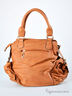 Стильная сумка из искусственной кожи. Декорирована оригинальной крупной накладкой и встречными складками. По бокам паты с пряжками для регулирования внутреннего объема. Основное отделение закрывается на молнию. Внешний прорезной карман на молнии.