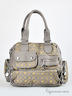 Эффектная сумка из искусственной кожи с оригинальным вышитым узором. Четыре внешних накладных и один прорезной карманы на молнии и на кнопках. Ручки средней длины позволяют носить сумку на плече. Бока дополнены кольцами для ремня.