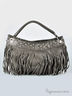 Оригинальная сумка из искусственной кожи. Стенки изделия средней плотности. Декорирована заклепками и тонкой кожаной бахромой. Ручка средней длины позволяет носить сумку на плече.