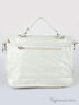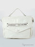 Изящная сумка из искусственной кожи. Плотные стенки изделия. Основное отделение застегивается на клапан с поворотным механизмом и на молнию. Клапан декорирован клепками и люверсами. С обратной стороны прорезной карман. Короткая ручка позволяет носить сумку в руке. По бокам кольца для длинного ремешка.