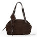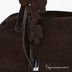 Женская сумка из замши гладкой фактуры. Сумка имеет мягкие стенки. Застегивается на молнию. Декорирована зигзагообразной прострочкой и двумя брелоками в виде цветов. Две ручки. Внутри одно отделение. Карман на молнии, карман для мобильного телефона. Мягкое дно без ножек.
