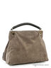 Сумка женская из натуральной замши мягкой формы на одной жесткой кожаной плетенной ручке ручке, застежка на кнопке, дно на металлических ножках. Размер: 45*33*18.