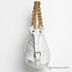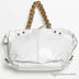 Прекрасная белая сумка,выполненная из искуственной лакированной кожи. Внутри съемный брелок-зеркальце. Ручки в виде цепочек.