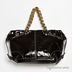 Прекрасная чёрная сумка,выполненная из искуственной лакированной кожи. Внутри съемный брелок-зеркальце. Ручки в виде цепочек.
