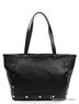 Женская сумка из натуральной кожи черного цвета. Внутри два отдела, разделены средником на молнии, с одной стороны скрытый карман на молнии, с другой два открытых кармана для сотового телефона и мелочи. Размеры: 43х26х12 см, длина ручек 24 см.