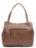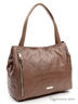 Женская сумка из натуральной кожи коричневого цвета. Внутри два отдела, разделены средником на молнии, с одной стороны скрытый карман на молнии, с другой два открытых кармана для сотового телефона и мелочи.