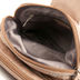Закрывается на широкий хлястик с застежкой на замок и молнию, внутри два отделения. На внутренних стенках один карман на молнии, и два открытых кармана - для мобильного телефона и мелких документов. Подкладка - текстиль. Наплечный ремень отстегивается от изделия. Дно формованное.