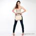 Оригинальная сумка из натуральной фактурной кожи. Сумка имеет мягкие стенки. На задней стороне сумки один карман на молнии. Боковые части сумки сжаты и декорированы металлическими вставками. Основное отделение застегивается на молнию. Внутри одно большое отделение разделенное мягкой перегородкой на молнии, один небольшой карман на молнии и два открытых кармашка для кошелька и кредиток. Удобные тонкие ручки средней длины позволят Вам носить сумку как в руке, так и на плече. Есть металлические ножки. Цвет фурнитуры - серебро.