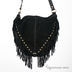 Стильная сумка из натуральной замши. Сумка имеет мягкие стенки. На внешней стороне сумки один карман на молнии. Внешняя часть декорирована вставками в виде бахромы из замши и металлическими клепками, а так же логотипом бренда Palio. Основное отделение застегивается на молнию. Внутри одно большое отделение разделенное мягкой перегородкой на молнии, один небольшой карман на молнии и два открытых кармашка для кошелька и кредиток. Удобная регулируемая ручка-ремешок из натуральной кожи позволит Вам носить сумку как в руке, так и на плече. Цвет фурнитуры - золото.