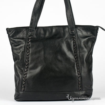 Стильная сумка из натуральной гладкой кожи. Сумка имеет мягкие стенки. Внешняя часть сумки декорирована металлическими вставками в виде цепочки. На задней стороне сумки один карман на молнии. Основное отделение застегивается на молнию. Внутри одно большое отделение разделенное мягкой перегородкой на молнии, один небольшой карман на молнии и два открытых кармашка для кошелька и кредиток. Удобные ручки из тонкой кожи позволят Вам носить сумку как в руке, так и на плече. Есть металлические ножки. Цвет фурнитуры - серебро.