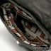 Закрывается на молнию, внутри одно отделение разделенное карманом на молнии. На внутренних стенках один карман на молнии, и два открытых кармана - для мобильного телефона и мелких документов. Подкладка - текстиль. Наплечный ремень регулируется по длине.