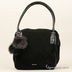 Элегантная женская сумка из замши. Стенки изделия мягкие. Передняя часть сумки декорирована брелоком с меховыми помпонами. Один внешний карман на молнии. Основное отделение застегивается на молнию. Внутри два открытых кармашка и один прорезной карман на молнии. Подкладка текстиль. Ручки средней длины позволяют носить сумку на плече. Цвет фурнитуры - серебро, ножки металлические. Дно жесткое, формованное.
