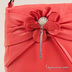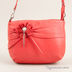 Основное отделение закрывается на молнию, внутри карман-перегородка на молнии. На внутренних стенках один втачной карман на молнии, и два открытых - для мобильного телефона и мелких документов. Наплечный ремень отстегивается от изделия и регулируется по длине. Спереди изделие украшено декоративным цветком.
