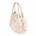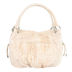 Изысканная сумка из кожи с выделкой под кожу рептилии белого цвета. Внутри два отделения на молнии и кармашек для мобильного. Декоративные завязки сбоку. Практичные небольшие ручки.