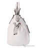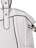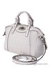 Дамская сумка на двух коротких ручках. Одно отделение на молнии. Внутри сумки карманы разного типа. С лицевой стороны декоративный замок и плетение из экокожи. С обратной стороны карман на молнии. По бокам декоративные затяжные шнурочки. Подкладка - принт нейлон, фурнитура - черный антик. Съемный, длинный, регулируемый плечевой ремень. Дно мягкое, форма. 24(36)-30-18см.