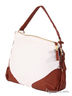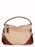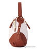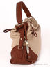 Интересная модель с немного загнутыми боками и двумя отдельными отделениями на молнии. Небольшие декоративные вставки из контрастного коричневого цвета экокожи по бокам. Подкладка - бежевый нейлон, фурнитура - серебро. Мягкая одинарная ручка средней длины. 25(42)-38-13см.