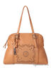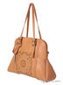 Дамская сумка на двух регулируемых ручках. Одно отделение на молнии. Внутри сумки съемная, вместительная косметичка в которой имеется карман на молнии. Так же к ней прилогается длинный, съемный, регулируемый плечевой ремень. С лицевой стороны перфорированный узор. Подкладка - серая мешковина, фурнитура- черный антик. Дно мягкое. 24(45)-34-10см.